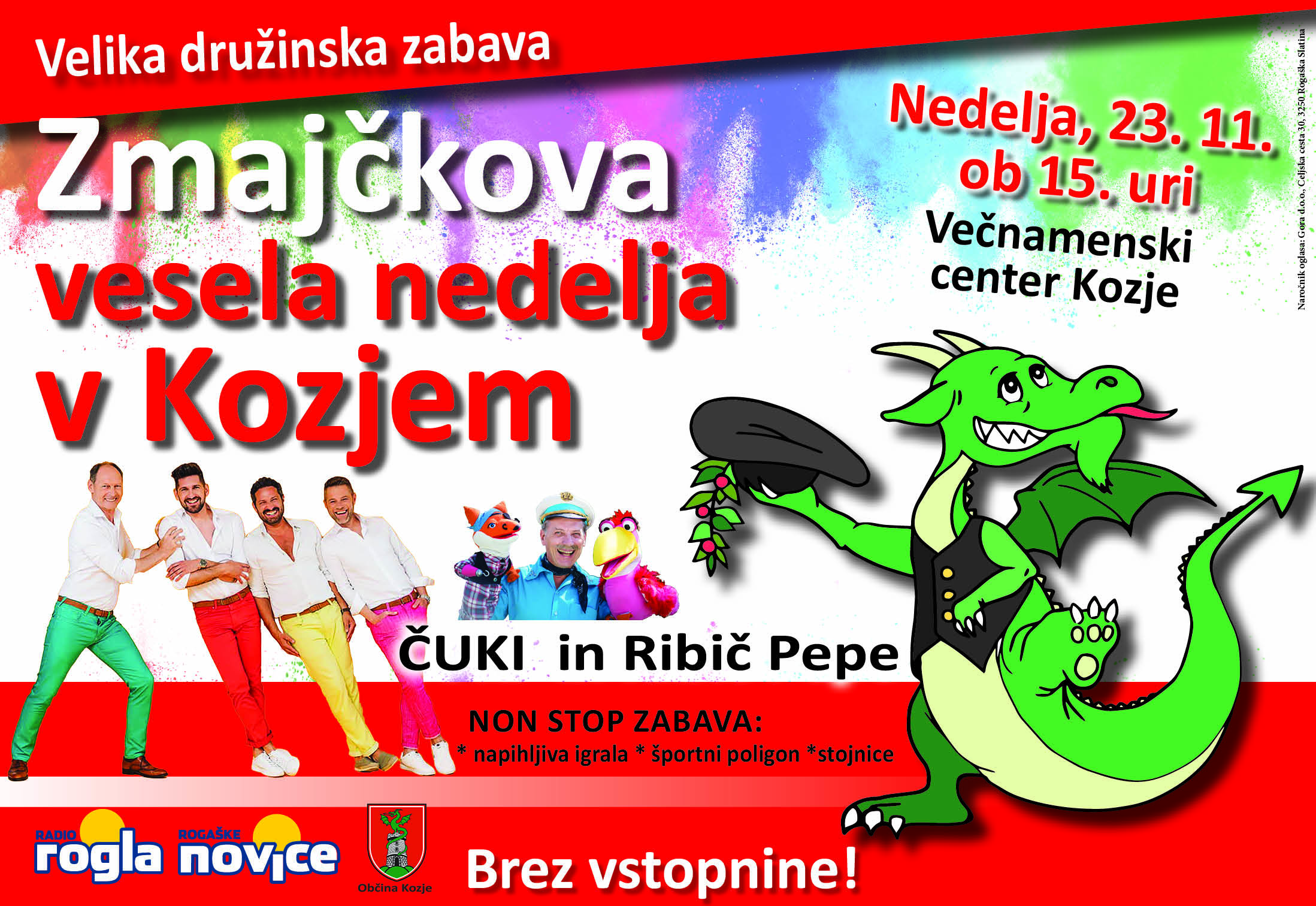 Za fotografiranje bo na voljo tudi kozjanski zmajček v naravni velikosti, sicer pa čaka še non stop zabava: napihljiva igrala, športni poligon, stojnice, foto kotiček.